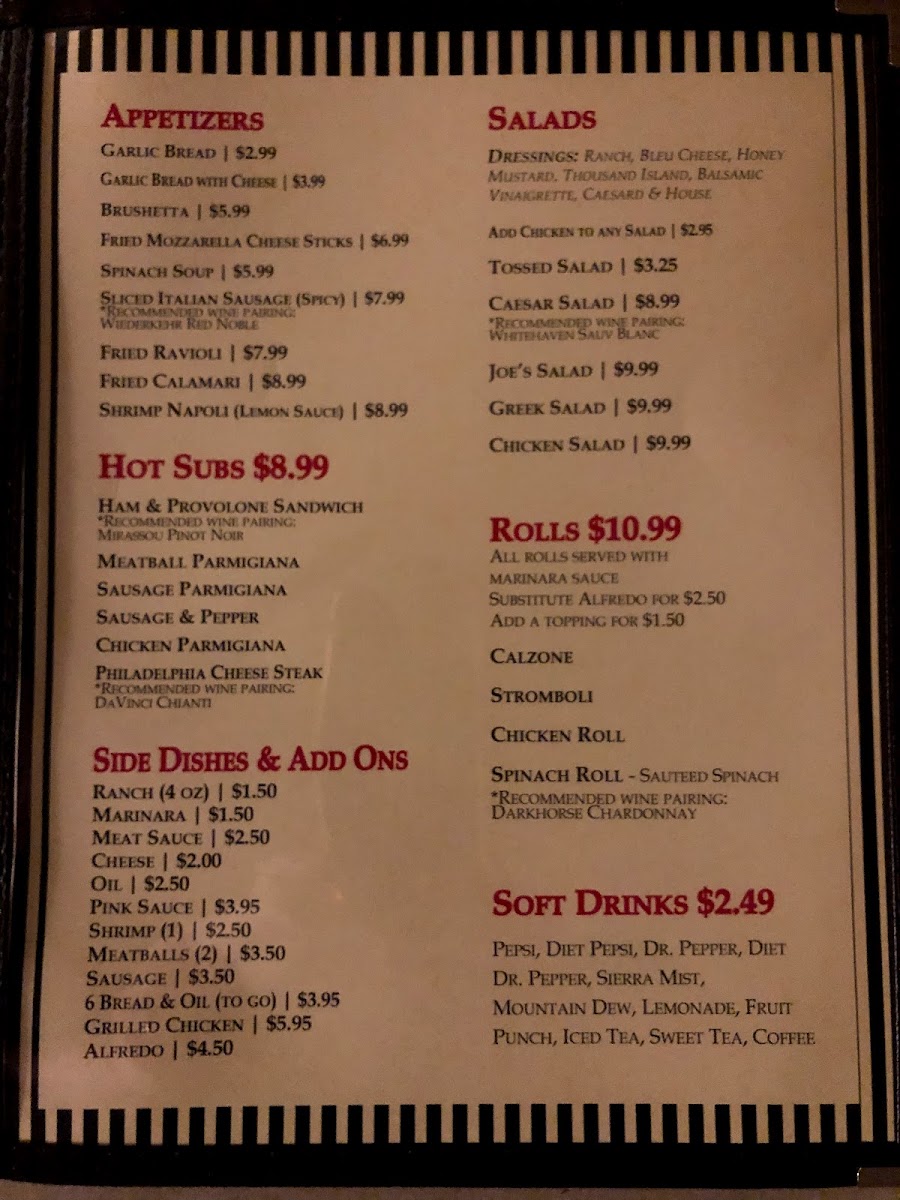 The friendly staff, often including family members, enhances the dining experience, making it a perfect spot for both casual nights and special occasions. Whether you're a local or just visiting, Joe's promises a satisfying Italian feast that keeps guests coming back for more.